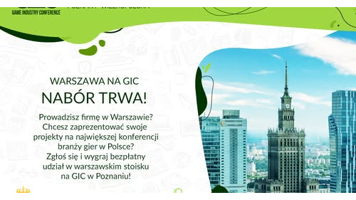 Urząd Miasta Stołecznego Warszawy oraz Fundacja Indie Games Polska zapraszają studia i firmy z branży game devu ze stolicy do udziału w Game Industry Conference. To doskonała okazja do zaprezentowania swoich projektów – gier, oprogramowania, sprzętu, a także rozwiązań technologicznych. Miasto Warszawa przygotowuje wspólne stanowisko, nad którym pieczę trzyma właśnie Urząd M. St.